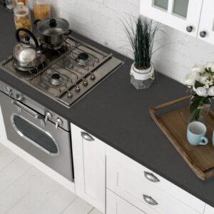 The grey background of Granite Amadeus is brought to life with a combination of specks and veining that will catch the eye. As with all Granite products you can expect your worktop surface to be durable, with resistance to chips and scratches. Furthermore, thanks to the design process you can be assured of Amadeus’s resilience to both heat and cold damage making it a perfect choice for kitchen surfaces.