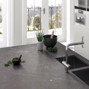 The grey background of Granite Amadeus is brought to life with a combination of specks and veining that will catch the eye. As with all Granite products you can expect your worktop surface to be durable, with resistance to chips and scratches. Furthermore, thanks to the design process you can be assured of Amadeus’s resilience to both heat and cold damage making it a perfect choice for kitchen surfaces.