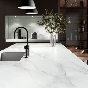 The grey background of Granite Amadeus is brought to life with a combination of specks and veining that will catch the eye. As with all Granite products you can expect your worktop surface to be durable, with resistance to chips and scratches. Furthermore, thanks to the design process you can be assured of Amadeus’s resilience to both heat and cold damage making it a perfect choice for kitchen surfaces.